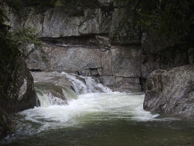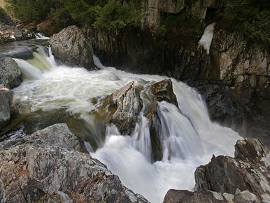 Summary: The falls’ cool green water makes an appealing contrast to the surrounding grey boulders. They’re a popular recreation spot in the warm summer months, so if that’s when you’re going, don’t expect to have the place to yourself.