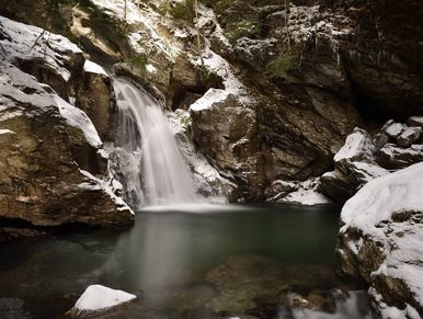 Though the water is downright cold year-round, the fall is a favorite haunt of locals and visitors looking to cool off in the summer. The fall can ice up in the winter, and in the summer the flow can be reduced, though the pool is usually full.